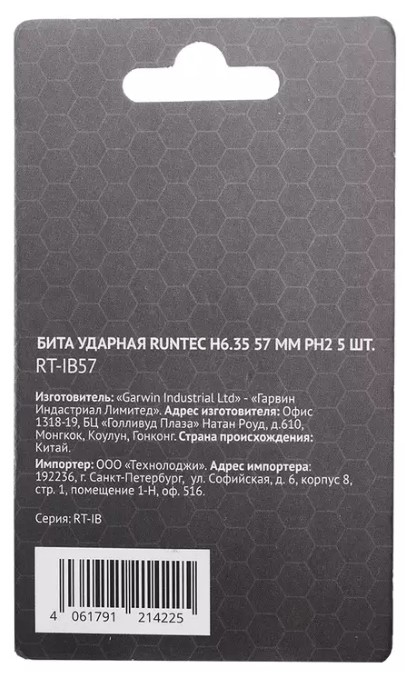 Бита имеет наружный шестигранный хвостовик HEX — E 1/4" (6.35 мм). В упаковке поставляется по 5 штук.