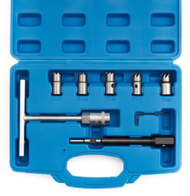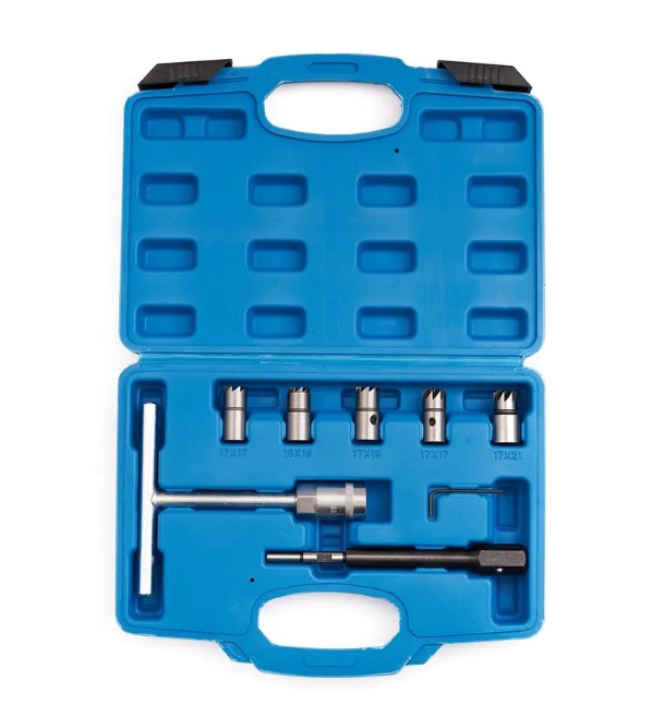 ST138 Набор фрез для восстановления гнёзд дизельных форсунок 7 предметов Rossvik. Предназначен для притирки/очистки седел форсунок дизельного двигателя, путем сглаживания неровностей