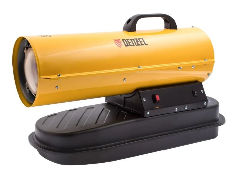 Дизельная тепловая пушка Denzel DHG-10 96481 мощностью 10 кВт и производительностью 300 куб. м/ч предназначена для обогрева нежилых помещений, таких как цехи и ангары. Она эффективно прогревает площади до 100 кв. м и идеальна для использования на строительных площадках и в полярных экспедициях. Для работы подходит любое дизельное топливо.