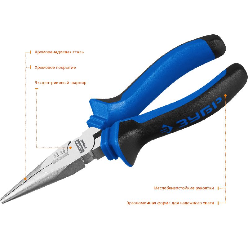 Тонкогубцы ЗУБР "МАСТЕР", маслобензостойкая рукоятка, покрытие оксидированное с полировкой, 160мм