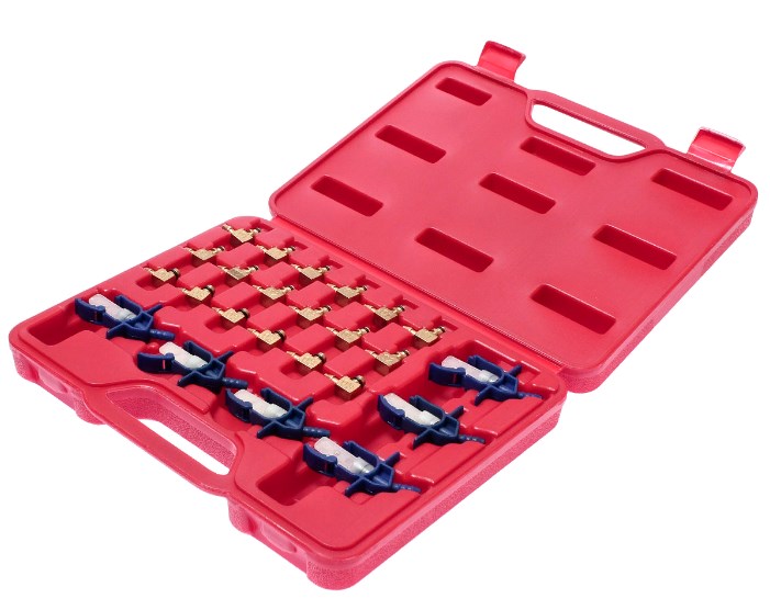В комплекте: 24 адаптера для форсунок Bosch-01, Siemens, Denso-03, Delphi и др.
