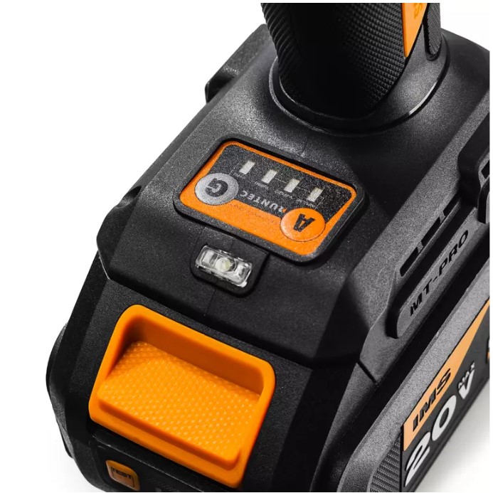 Эргономичный корпус с прорезиненной рукоятью и ребрами жесткости для прочности. При заклинивании оснастки двигатель автоматически отключается. Быстрозажимной патрон ускоряет работу и предотвращает проворачивание сверла. Встроенная светодиодная подсветка для работы в темноте.