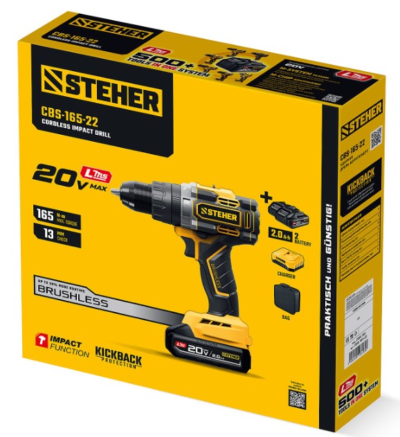 Дополнительно: Подсветка, индикатор заряда, реверс, дополнительная рукоятка с накладкой, скоба для пояса, быстрый зарядник, сумка.