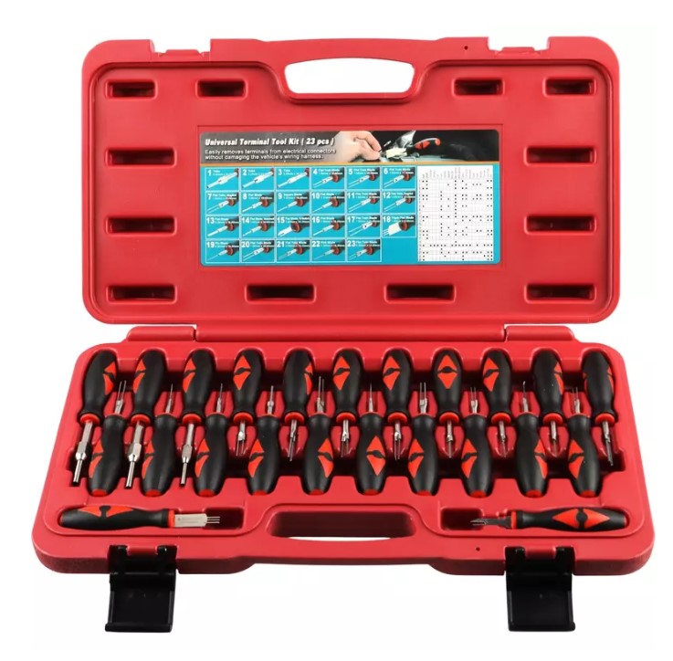 Этот набор позволяет работать с большинством типов разъемов, используемых в легковых, грузовых автомобилях и автобусах. Благодаря 23 инструментам в комплекте, отпадает необходимость приобретать элементы по отдельности, что обеспечивает возможность работы с различными видами электрооборудования.