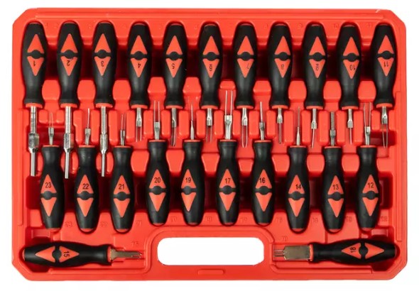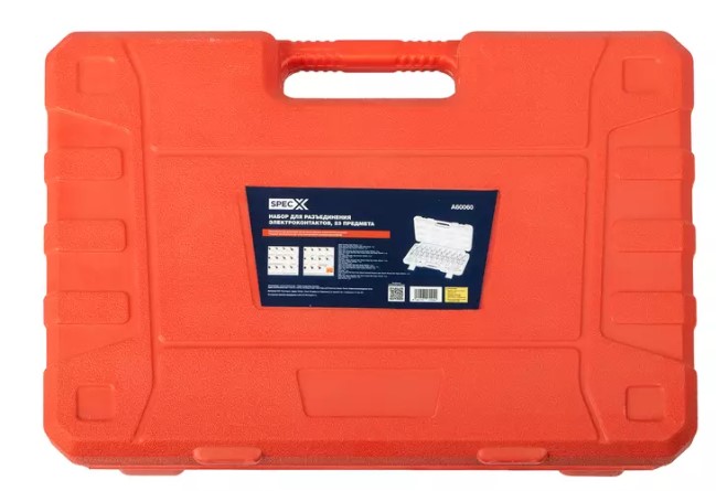 Набор приспособлений для разъединения электроконтактов SPECX A60060 включает 23 предмета в пластиковом кейсе, предназначенных для аккуратного демонтажа контактов (плоских, круглых и др.) из разъемов. В наборе также имеются экстракторы для разблокировки замков контактов в электрических разъемах. Универсальное использование набора позволяет работать с большинством разъемов, используемых на легковых, грузовых автомобилях и автобусах. Эргономичные двухкомпонентные рукоятки исключают возможность выскальзывания инструмента из рук. Пластиковый кейс облегчает хранение и транспортировку инструмента.