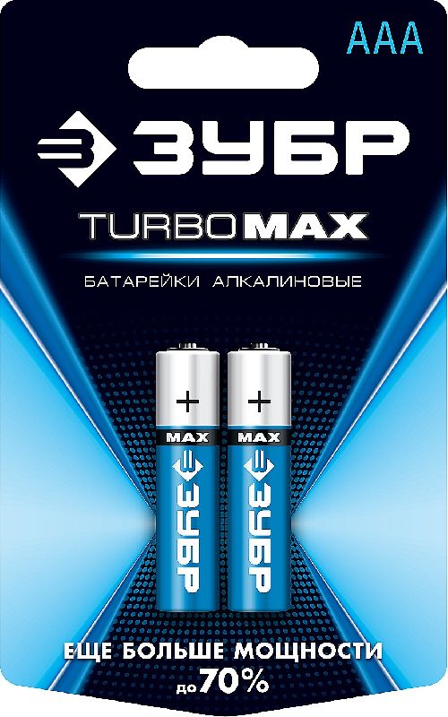 Батарейка щелочная (алкалиновая), "AAA", 1,5 В, 2 шт ЗУБР Turbo-MAX