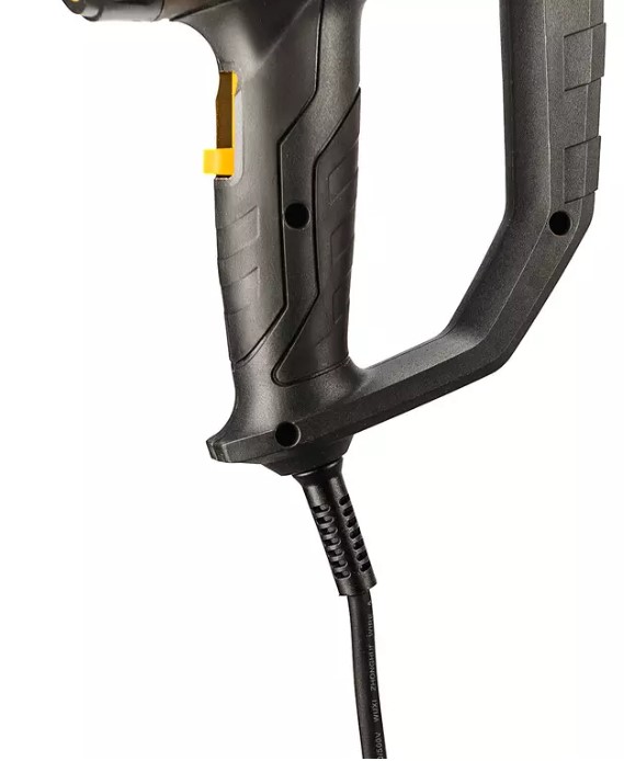 Технический фен с плавной регулировкой температуры подходит для разогрева и удаления краски на оконных рамах, изоляции проводов, формования изделий из ПВХ, пайки, сварки изделий из пластика, нагревания замерзшего водопровода. Оснащен защитой от перегрева, которая автоматически отключает инструмент при перегрузке.