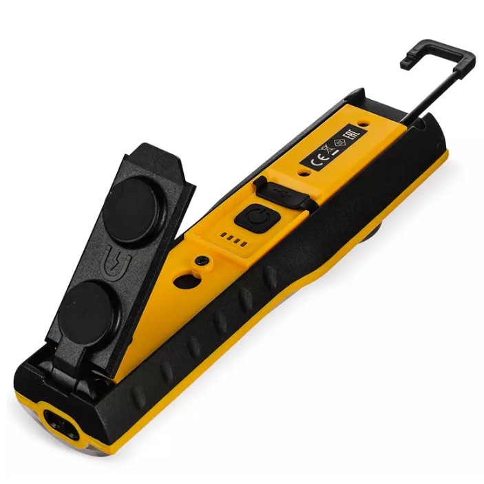 Защита IP54 IK08, литиевая батарея от -20° до +40°С, работа в помещении и на улице. Три режима цветовой температуры (CRI≥95), плавная регулировка яркости до 800 Лм. УФ-светодиод 3 Вт для обнаружения утечек. Магнитный держатель для крепления на металлических поверхностях. Зарядка через Type-C, батарея 5000 мАч, до 20 часов работы.
