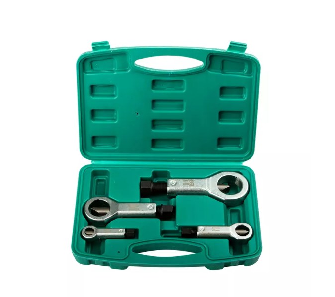 Этот комплект предназначен для безопасного освобождения закисших или поврежденных резьбовых соединений от гаек, которые не поддаются снятию с помощью ручного или ударного инструмента.