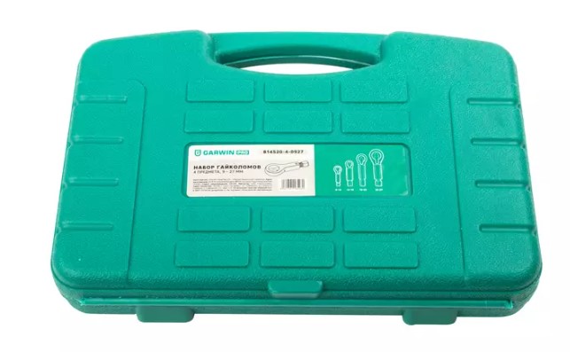 Набор ручных гайколомов GARWIN 814520-4-0927 включает в себя четыре предмета. Он предназначен для захвата гаек диаметром от 9 до 27 мм.