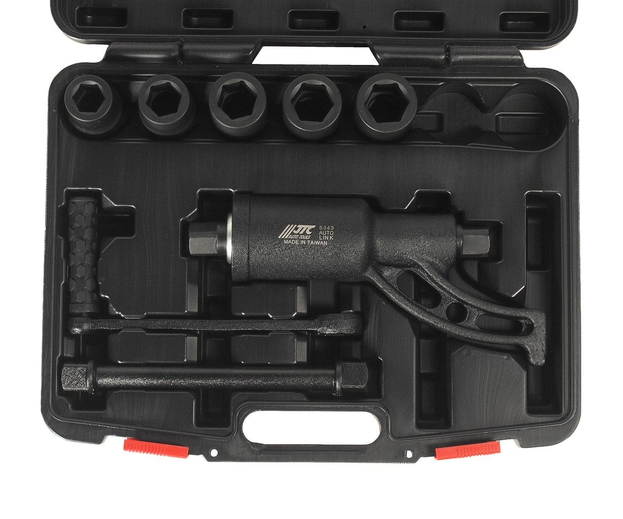 В комплекте: ключ редукторный, удлинитель, гаечный ключ, головки (5 шт.)