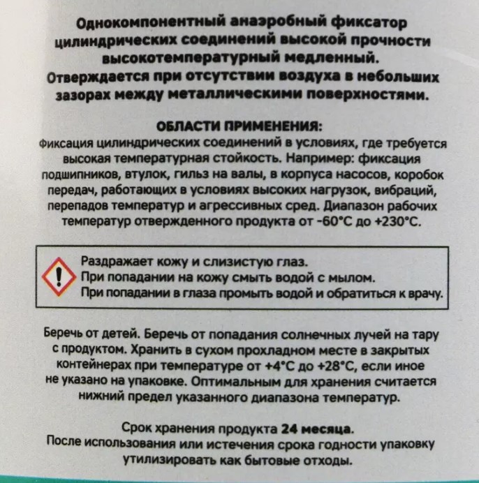 Фиксатор подшипников GARWIN PRO 50 мл — профессиональный термостойкий состав для вал-втулочных соединений до +230°C. Обеспечивает прочность 21-35 Нм, плотное заполнение зазоров до 0,4 мм и устойчивость к вибрациям, ударным нагрузкам, маслам, топливу и химическим реагентам. Применяется в автомобильной промышленности, производстве промышленного оборудования и энергетике.