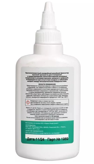 Высокая прочность (22-39 Нм) обеспечивает надёжную фиксацию даже при сильных вибрациях. Широкий диапазон рабочих температур (-60...+180°C) позволяет использовать фиксатор в экстремальных условиях. Подходит для нержавеющей стали и гальванических покрытий. Оптимальный объём 50 мл удобен для профессионального использования. Результат фиксации долговечен и не требует регулярного обслуживания соединений.