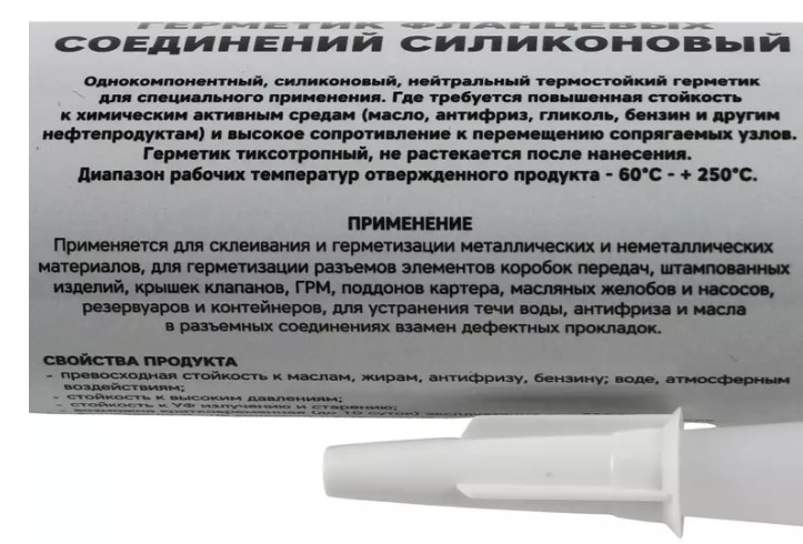 Однокомпонентный силиконовый нейтральный термостойкий клей-герметик предназначен для специальных применений. Обладает высокой устойчивостью к химическим веществам (масло, антифриз, гликоль, бензин и другие нефтепродукты) и высоким сопротивлением к перемещению соединяемых узлов. Отличается тиксотропными свойствами, не растекается после нанесения. Применяется для склеивания и герметизации металлических и неметаллических материалов, герметизации разъемов в коробках передач, крышках клапанов, поддонах картера, а также для устранения утечек воды, антифриза и масла в соединениях. Диапазон рабочих температур: -60°C - +250°C.