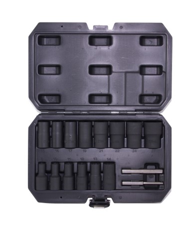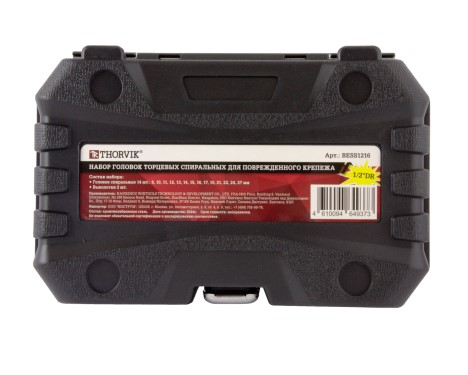 Набор спиральных торцевых головок для поврежденного крепежа 1/2"DR, 8-27 мм, включает 16 предметов от Thorvik. Головки в этом наборе обладают уникальной спиральной формой рабочей части, которая позволяет эффективно снимать болты и гайки с сильно изношенным профилем. Специальный дизайн врезается в поврежденные детали, фиксируя их и преобразуя в обычные головки.