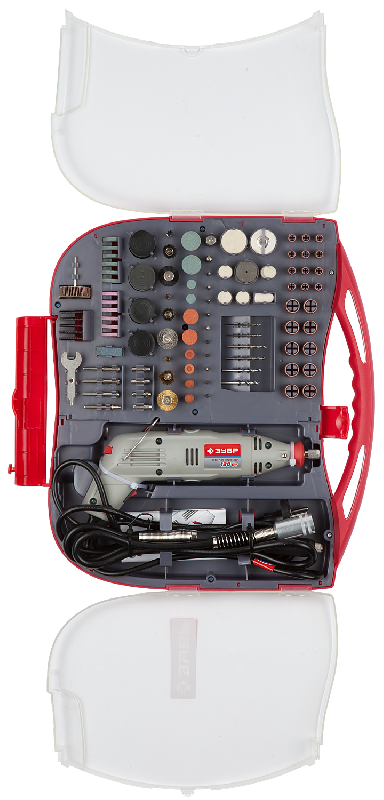 Комплект поставляется в удобном транспортировочном боксе, который облегчает хранение и переноску инструмента. В наборе имеется 217 различных насадки, что делает его универсальным решением для большинства задач по обработке материалов.