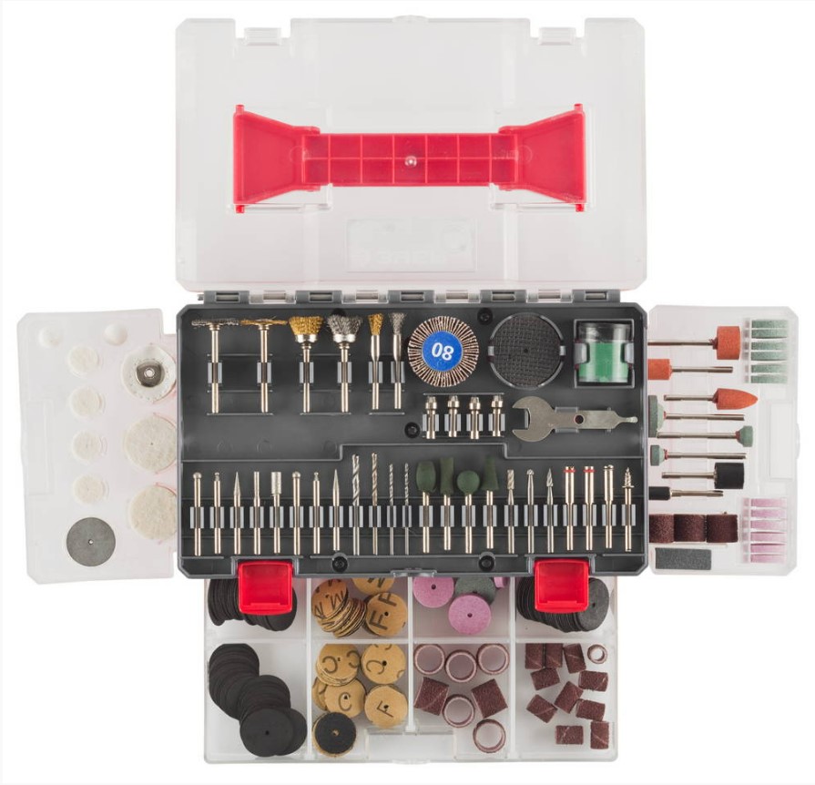 Комплектация набора оптимальна подобрана для осуществления высокоточных полировальных, шлифовальных, заточных и отрезных работ в домашних условиях