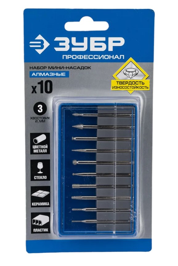 Набор мини-насадок для граверов с алмазным напылением 10 предметов ЗУБР