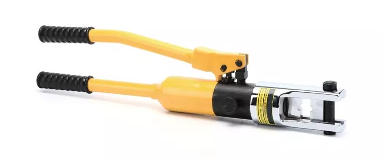 Ручной гидравлический пресс ТЕХРИМ предназначен для обжимки различных электрических клеммных соединений. Устройство имеет особую конструкцию: на одной из ручек установлен гидроцилиндр, шток которого механически связан с обжимной головкой. Вторая ручка соединена с поршнем насосного механизма. При сжимании рукояток поршень вдавливается в гидроцилиндр, создавая в нем давление, которое передается на обжимную головку с помощью выходного штока.