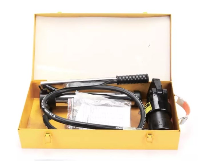 Устройство состоит из корпуса, гидроцилиндра, быстроразъемного соединения (БРС), насоса и шланга высокого давления. В комплекте представлено большое разнообразие насадок. Инструмент прост и удобен в обращении и наилучшим образом подходит для частого использования.