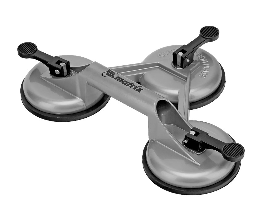 Алюминиевый тройной стеклодомкрат Matrix 875255 предназначен для подъема, переноса и установки стекол, зеркал, плитки и других гладких материалов с помощью трех вакуумных присосок, которые надежно фиксируются. Он способен удерживать груз до 120 кг и будет полезен как в строительстве и ремонте, так и в быту.