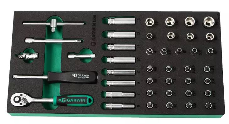 Набор торцевых головок GARWIN PRO 645015 из хром-ванадиевой стали идеально подходит для ручного монтажа и демонтажа резьбового крепежа. В этом наборе есть все необходимое для решения любых задач, связанных с крепежом. Набор включает в себя 43 предмета, в том числе торцевые головки, удлинители, ключи и другие полезные аксессуары. Все инструменты изготовлены из прочной хром-ванадиевой стали, что гарантирует их долговечность и износостойкость. Набор поставляется в удобном ложементе из EVA, который облегчает хранение
