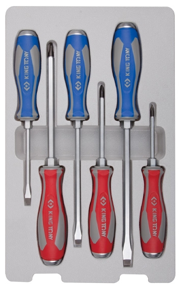Набор отверток KING TONY 30206MR в коробке (6 предметов) — это качественный профессиональный инструмент, идеально подходящий для обслуживания резьбовых соединений, включая ремонт легковых автомобилей. Прямые рукояти обеспечивают комфортное использование.
