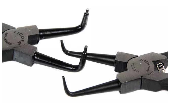 Комплект инструментов для снятия и установки стопорных колец японского типа. Предназначен для работы с внутренними и внешними стопорными кольцами в различных узлах и агрегатах автомобиля, таких как ступицы, карданные передачи и коробки передач.