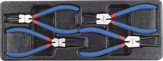 Комплект применяется для демонтажа/монтажа внешних и внутренних стопорных колец на валах и в отверстиях. Пластиковый ложемент позволяет хранить набор в ящиках инструментальной тележки или верстака.