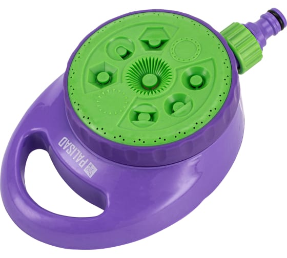 Распылитель-дождеватель Palisad 65463 с 8 режимами, на подставке, оптимален для участка среднего размера. Максимальная площадь полива составляет 113 кв. м. С помощью устройства можно орошать растения на участках различной формы в саду, на огороде.