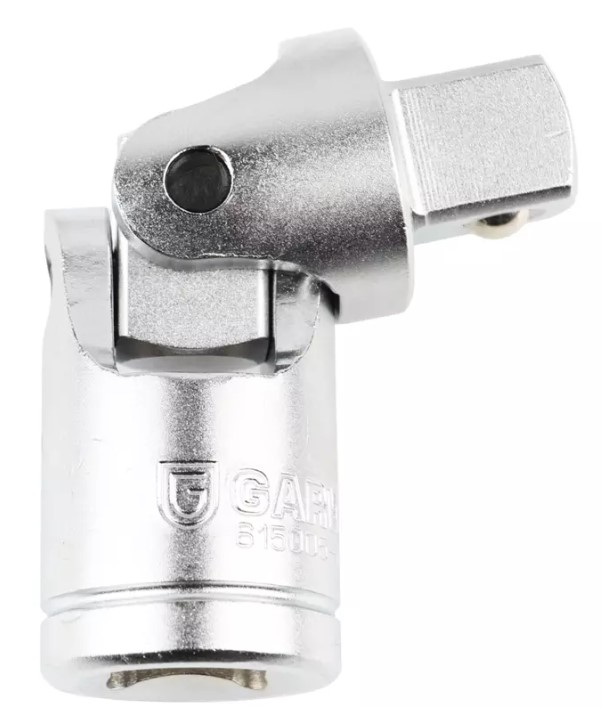 Кардан GARWIN UJ003, с шариковым фиксатором. Применяется для передачи крутящего момента под углом на торцевые головки от трещотки или воротка. Размер привода - 1/2 дюйма (12,7 мм).