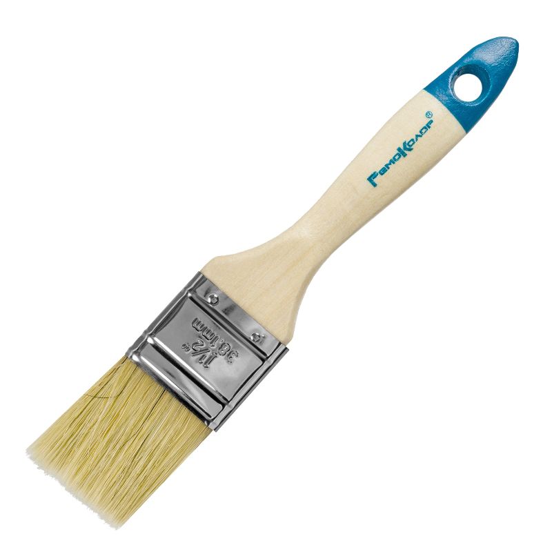 Кисть плоская 38 мм (1,5") натуральная светлая щетина, деревянная ручка Евро