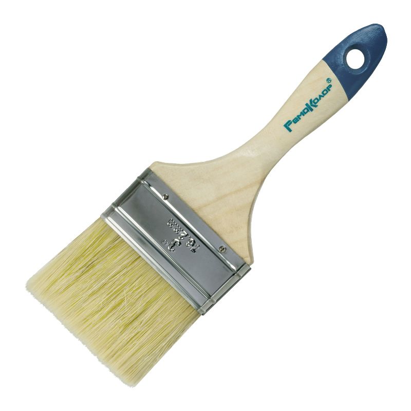 Кисть плоская 76,2 мм (3") натуральная светлая щетина, деревянная ручка Евро
