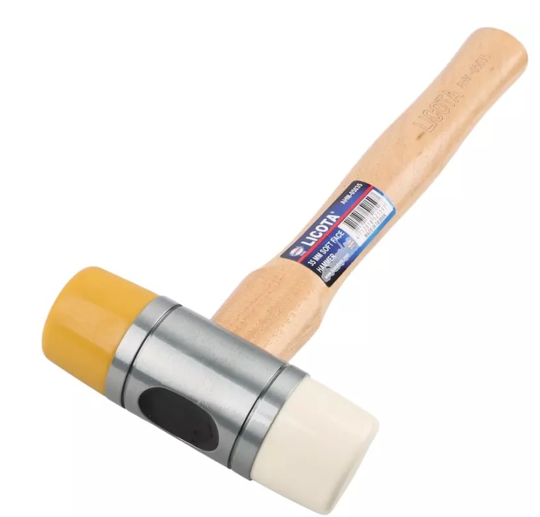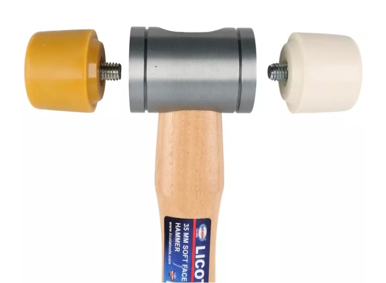 Молоток Licota AHM-05035 оснащён мягкими бойками из полиуретана и нейлона, а также стальным корпусом и рукоятью из древесины гикори.