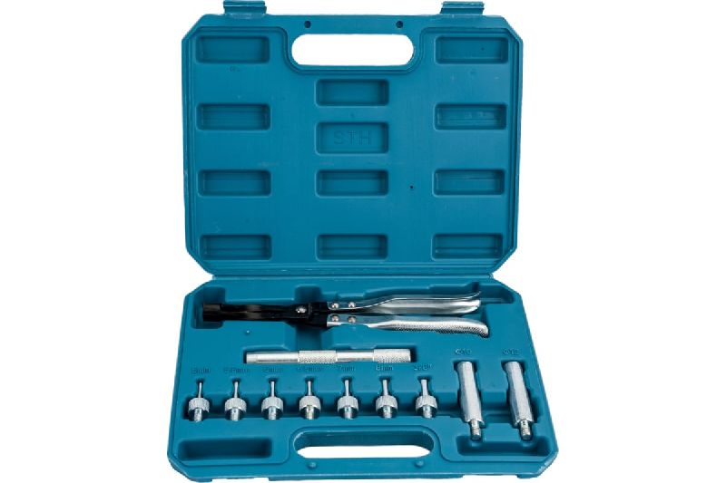 Набор для обслуживания двигателя ROCKFORCE (11 предметов в кейсе) подходит для большинства автомобилей, включая BMW, Audi, VW, Skoda, Renault, Ford и Toyota. Включает плоскогубцы для сальников клапанов, держатель для сальников, адаптеры и наконечники для монтажа. Изготовлен из высококачественных материалов, удобен в хранении и транспортировке. Подходит для замены и установки сальников, а также для снятия маслосъемных колпачков без повреждения деталей.