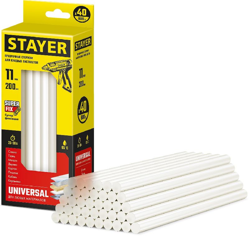 Универсальные клеевые стержни для надежного соединения изделий из различных материалов, а также выполнения ремонтных работ, в местах крепления материалов, где применение гвоздей, скоб и другого крепежа невозможно или нежелательно.