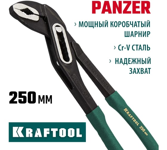 Профессиональные переставные клещи KRAFTOOL Panzer 22359-25 оснащены мощным коробчатым шарниром. Цельнокованая конструкция и закаленные рабочие поверхности гарантируют высокое качество выполнения задач. Инструмент обладает длительным сроком службы благодаря использованию высококачественной Cr-V стали, усиленной конструкции и надежной защите от коррозии. Клещи предназначены для фиксации и отворачивания/заворачивания объектов без специального профиля, а также могут использоваться как трубный или разводной ключ.