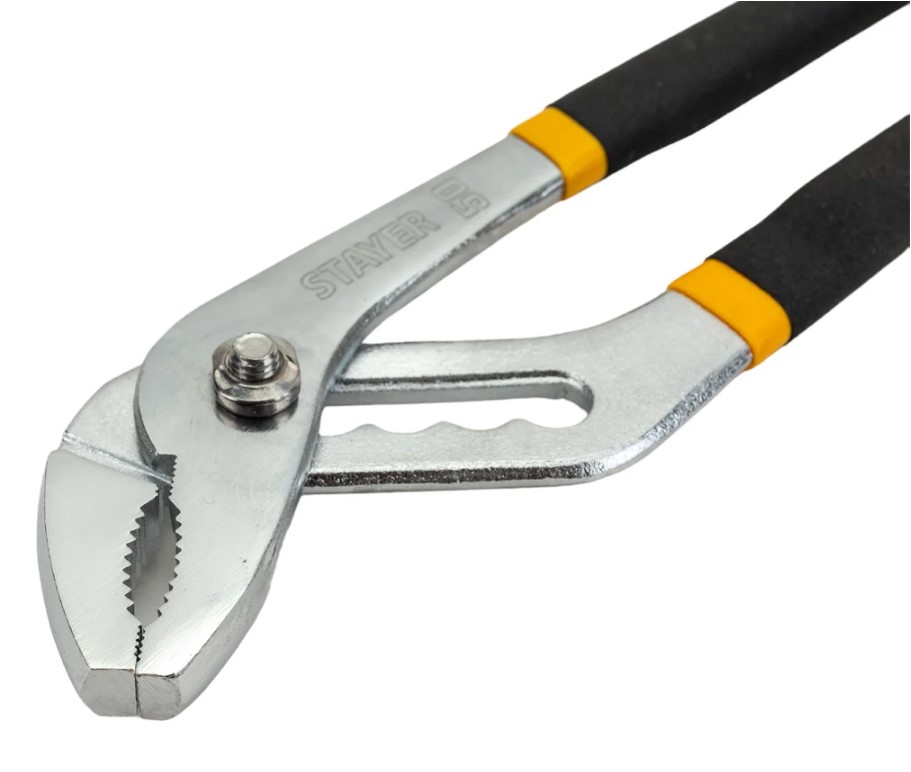 Переставные клещи STAYER длиной 250 мм (модель 22035-10-25_z01) предназначены для захвата крепежа и труб диаметром до 2 дюймов. Они значительно облегчают работу специалистов в области монтажа и сантехники.