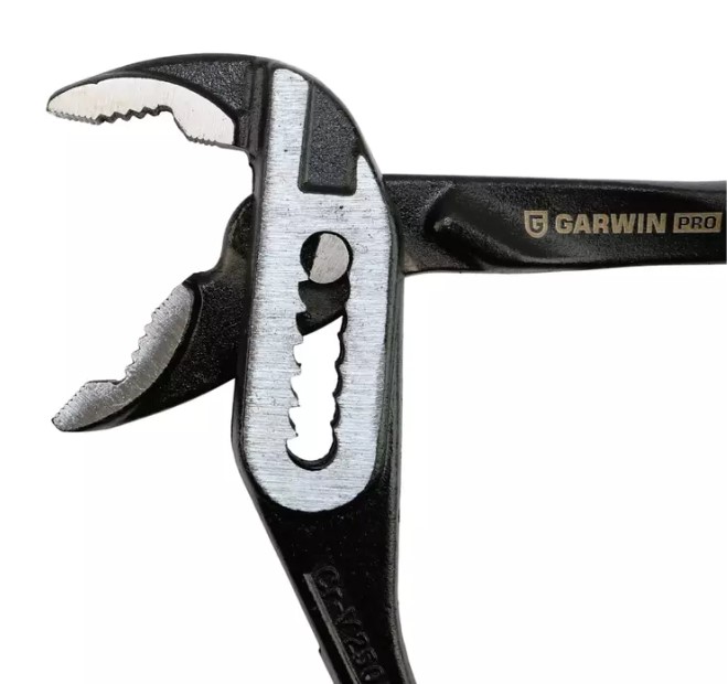 Усиленные переставные клещи — шарнирно-губцевый инструмент с удобными рукоятками и губками из закаленной стали. Инструмент применяют для фиксации заготовок, в работах с деталями круглого профиля, а также для откручивания гаек.
