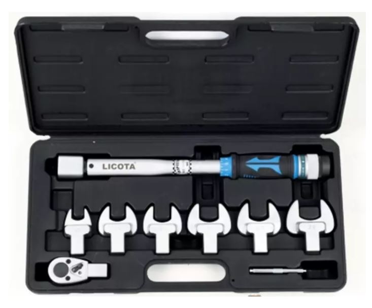 Динамометрический ключ предельного типа с набором сменных насадок. Предназначен для затяжки резьбовых соединений с требуемым моментом. Рабочий диапазон 15-80 Нм.