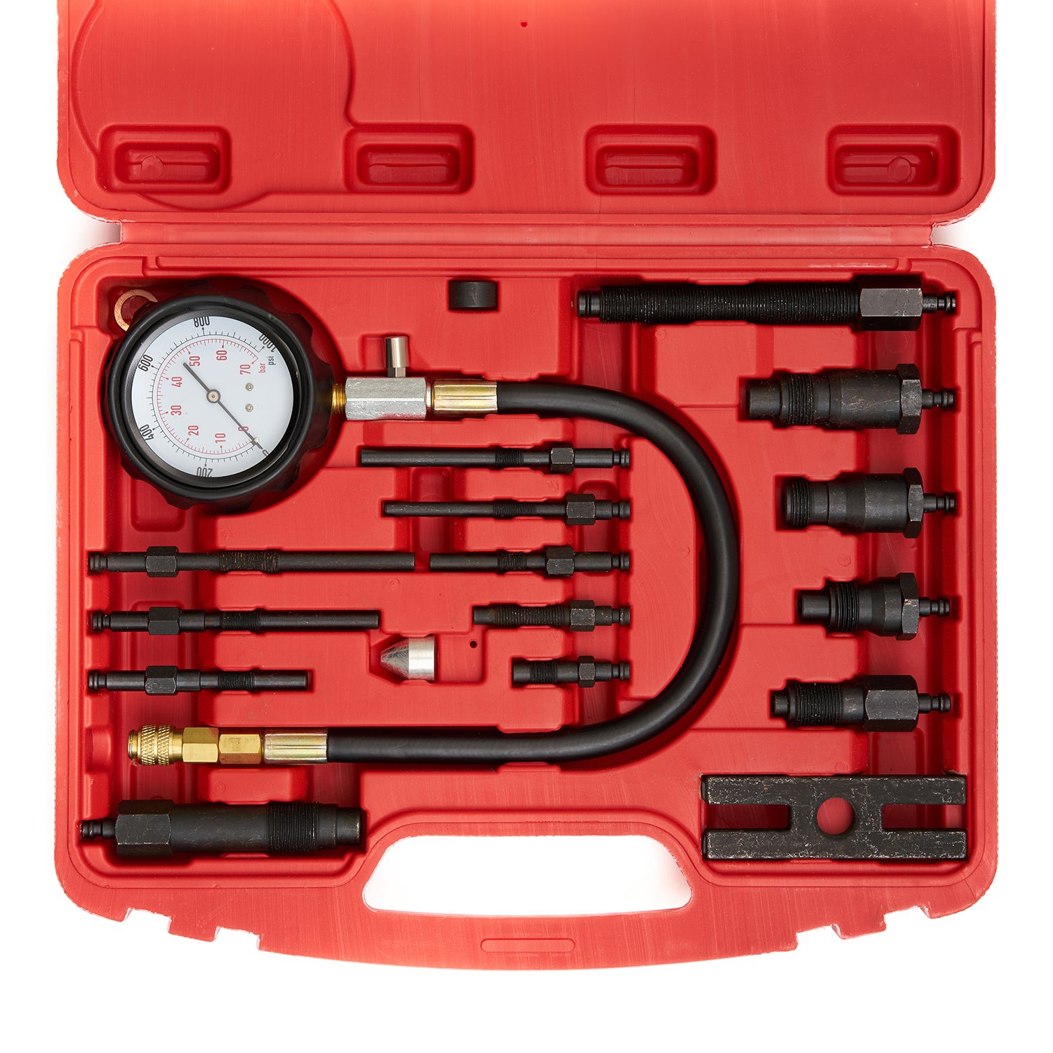 Компрессометр ROSSVIK ST108 с адаптерами для дизельных двигателей (0-1000PSI, 0-70 бар) — это 17-предметный набор для диагностики и ремонта автомобилей. Он помогает выявить проблемы в системе подачи топлива, такие как неисправности поршня или цилиндра.