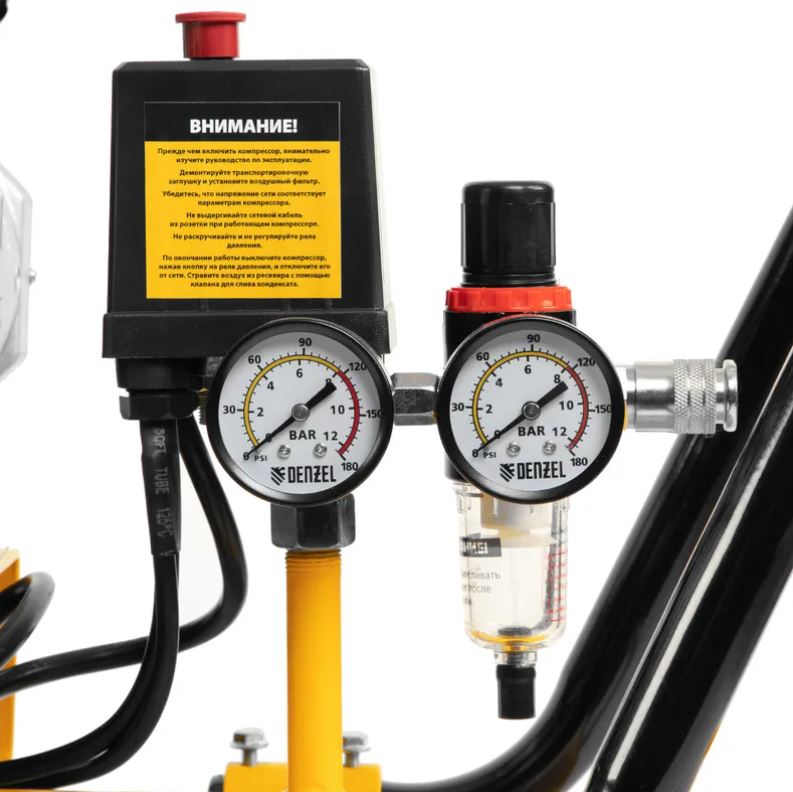 Контроль давления в ресивере и на выходной магистрали — компрессор оборудован двумя манометрами.
