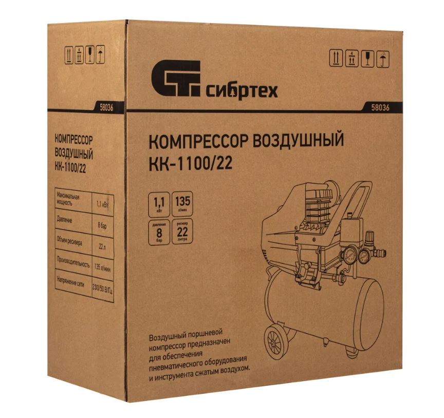 Компактный и бюджетный компрессор Сибртех КК-1100/22 применяется для небольших ремонтных операций, подкачки шин, обслуживания насосов, продувки деталей.