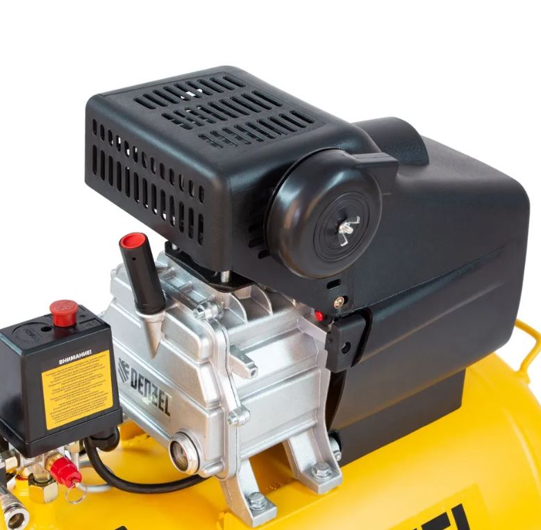Воздушный компрессор с прямым приводом Denzel DC1500/50 58161 мощностью 1,5 кВт и производительностью 220 л/мин, с объемом ресивера 50 л, используется для подачи сжатого воздуха к пневмоинструменту, например, пневмогайковерту, пневмодрели, пневмостеплеру, пневмозубилу. Благодаря использованию смазочного масла, которое снижает износ деталей, компрессор выдерживает длительную работу и подходит для профессионального применения в автомастерской, гараже или на строительной площадке.