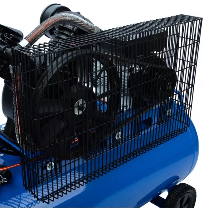 Ременной привод обеспечивает плавный ход поршня, увеличивая ресурс, снижая шум и вибрацию. Работает на 1050 об/мин, что повышает эффективность.