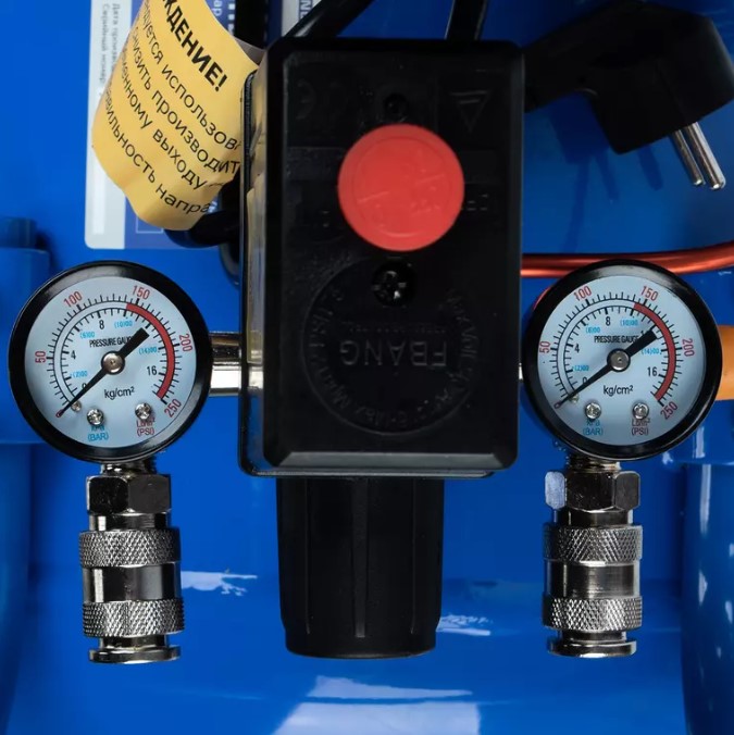 Высококачественный стальной ресивер с манометром и предохранительным клапаном для безопасности.
