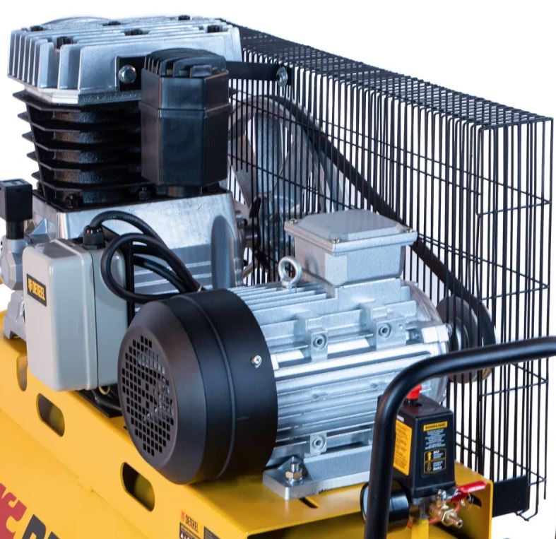 Медная обмотка обеспечивает длительную стабильную работу двигателя даже при высоких нагрузках, а стальные стенки ресивера толщиной 3,7 мм устойчивы к повреждениям и коррозии.