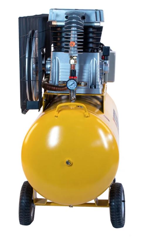 Компрессор можно свободно перемещать по рабочей площадке благодаря удобной П-образной ручки и 4 колесам.
