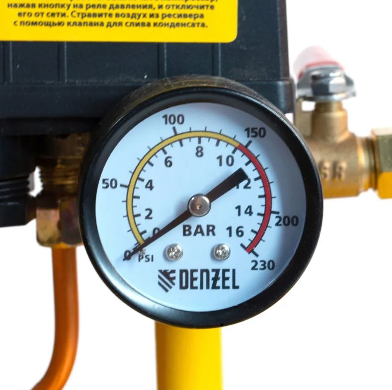 Оснащен двумя манометрами для отслеживания давления в ресивере и в пневмолинии.