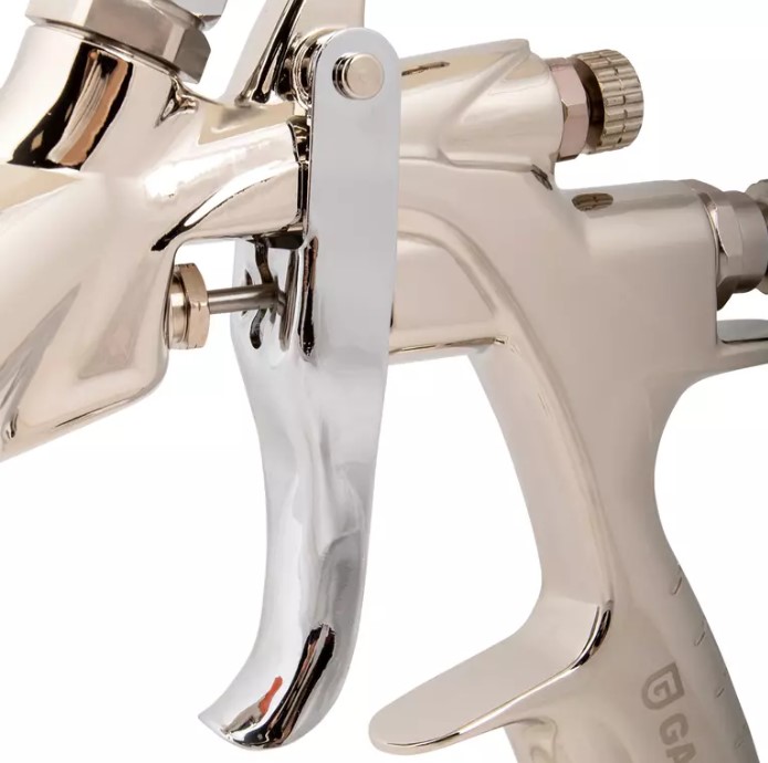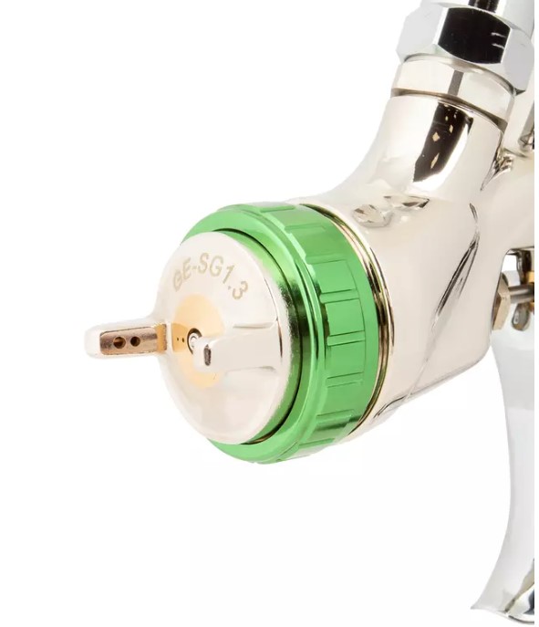 Пневматический краскопульт GARWIN PRO GE-SG1.3 с верхним бачком используется для распыления лакокрасочных материалов на поверхности.